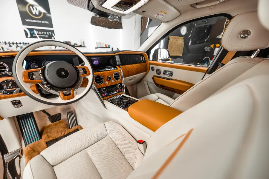 Detailing wnętrza to wieloetapowy proces czyszczenia, odświeżania i zabezpieczania wszystkich elementów kabiny. Pracujemy z dbałością o każdy detal, wykorzystując odpowiednie środki i techniki dla różnych materiałów – skóry, tkanin, alcantary, tworzyw sztucznych czy elementów gumowych.